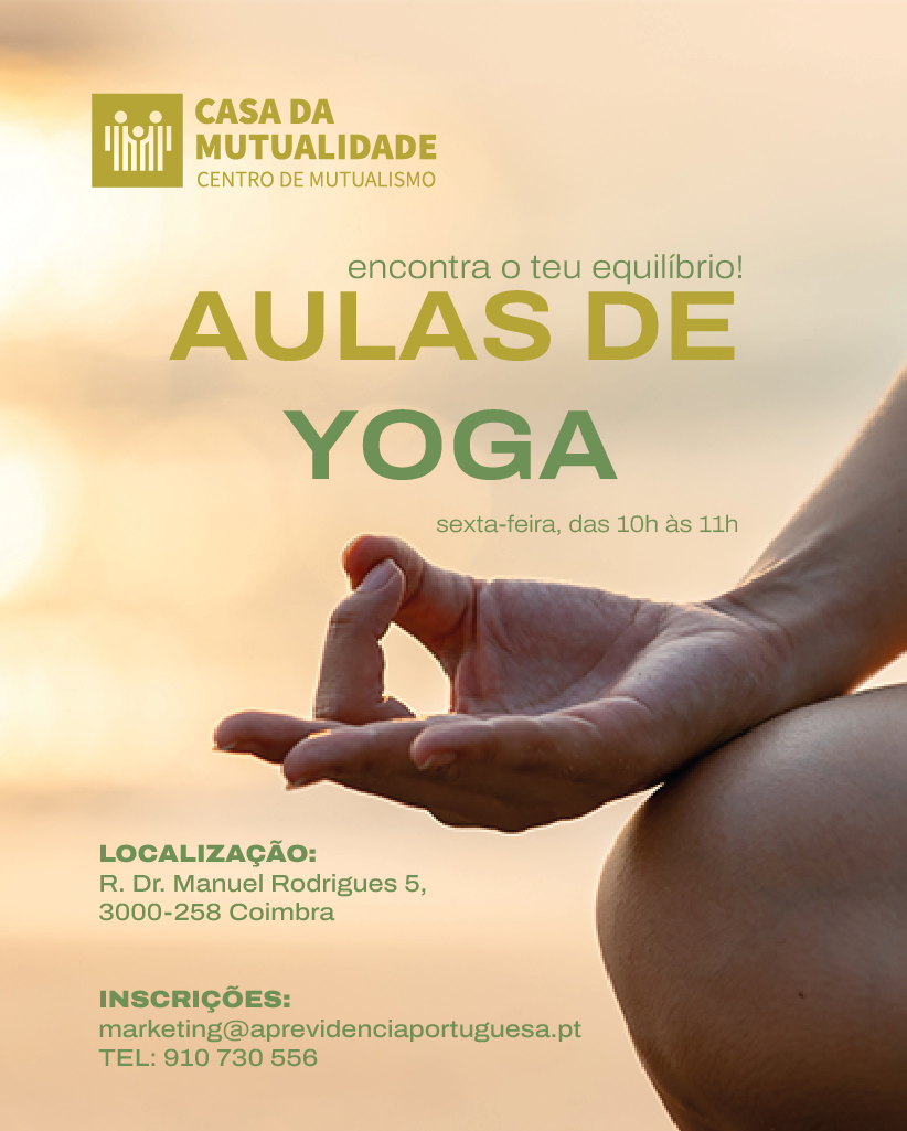 Junte-se a nós e à professora de Yoga Miriam Jorge (Clínica Previdência Saúde), na Casa da Mutualidade.
